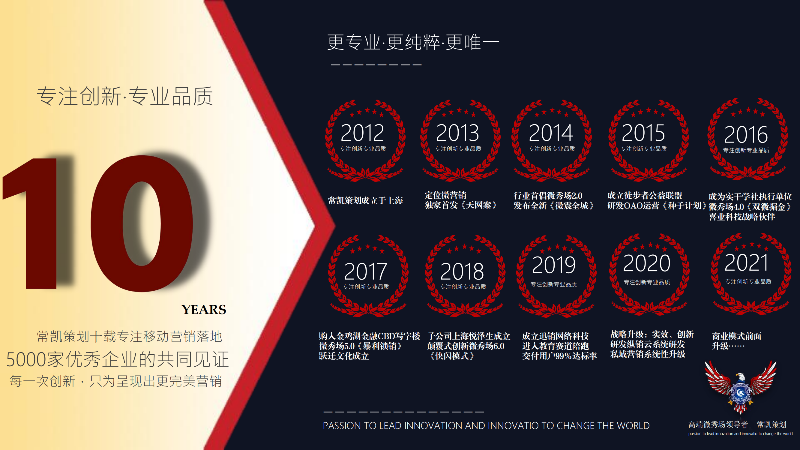 常凯营销策划(上海)有限公司,成立于2013年,专注于为中小微营销体系赋能,通过企业数字化营销落地辅导、商学院培训课程、营销Saas工具三大模块相结合,为机构打造低成本、高流量、增收入、强利润的营销体系。核心团队来自一线互联网公司、摄影机构和营销机构,服务过几千家摄影培训机构和儿童消费类行业。