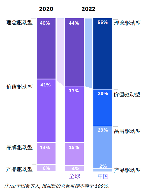 44%的全球消费者和55%的中国消费者是理念驱动型消费者,选择与自己价值观契合的产品和品牌。