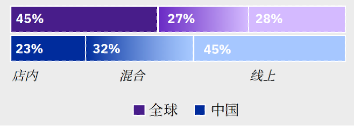 30%的全球和中国消费者选择混合购物方式。