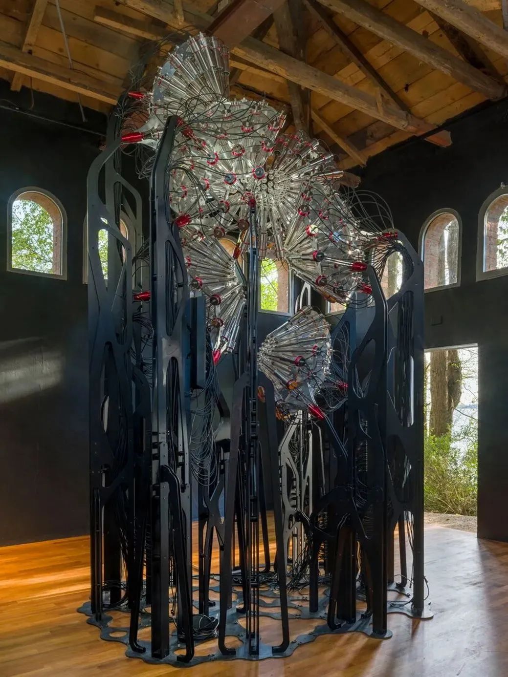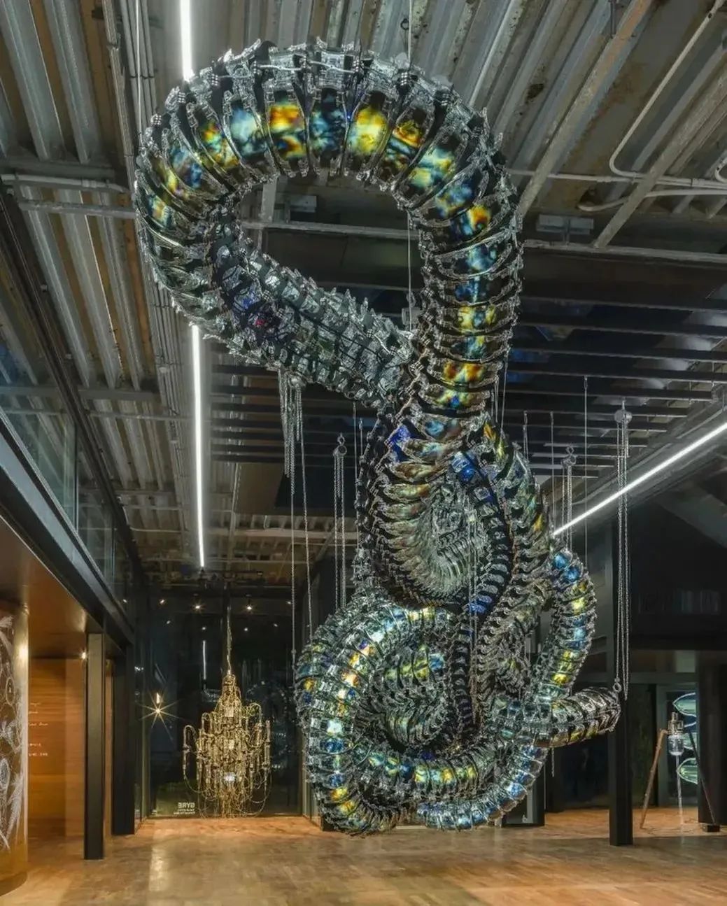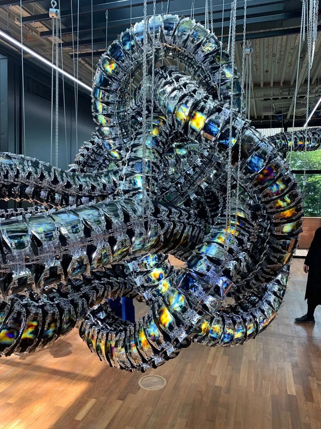 这座蛇形雕塑缠绕成一个大结,和周围空间连接在一起,就像连接身体不同部位的中枢神经一样。当它接收到来自另一个展览Argos – The Sollen Suns的信号时,雕塑开始跳动和呼吸。