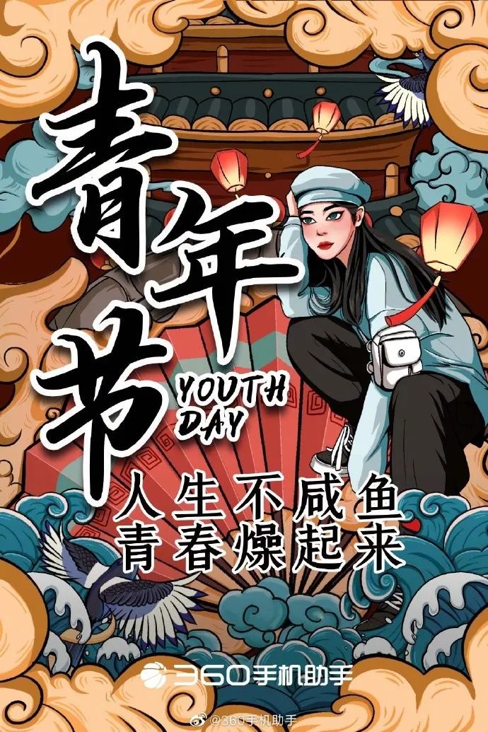 还有《青年节快乐,渣男除外》,和今年的渣男事件结合在一起。也可以借用谐音梗,像另湖为故宫手绘图制定的文案那样《好青年什么都“绘”,五四青年节快乐!》。