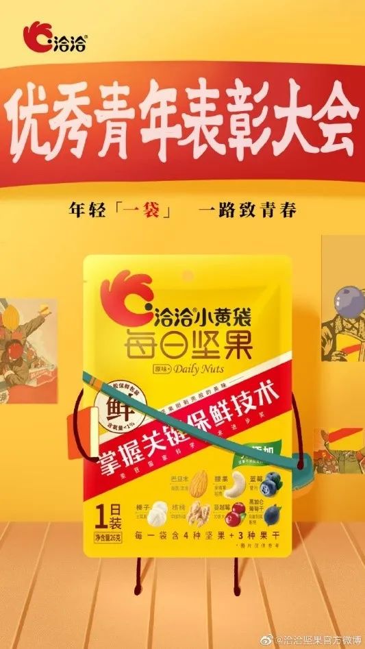 这是比较常见的表达角度去,关联的关键词有关爱、成长、回家、陪伴等。话题文案:《好青年经常做饭,偶尔偷个懒》,《喜欢给老板加班,也喜欢给老婆加菜》,《做好大小孩,才能养好小小孩》,《相遇于青丝,相守至一生,五四青年快乐》。还可以说《产品用对,姿色不褪》,《民以食为天,趁着年轻多吃点,用食力撑起零食界半边天》,《喜欢叫宝贝,也喜欢被叫宝贝》。